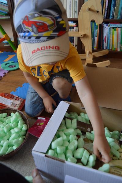S dvoma malými deťmi sa nakupuje celkom dosť obtiažne a tak som si zvykla dosť veľa vecí nakúpiť cez internet. Práve preto ma absolutne neprekvapilo, Adamkovo vyhlásenie, že je náš ujo kuriér ako Ježiško 😀 Keď k nám zazvonil ujo kuriér minulý týždeň a v rukách držal tento veľký balík, zdieľala som s Adamkom rovnaký "vianočný" pocit. S deťmi sme sa vrhli krabicu hneď rozbaliť. Adamko povyberal výrobky, s ktorých ho najviac zaujalo sušené ovocie a želé cukríky a Tomáško sa zhostil krabice plnej penových kúsočkov.