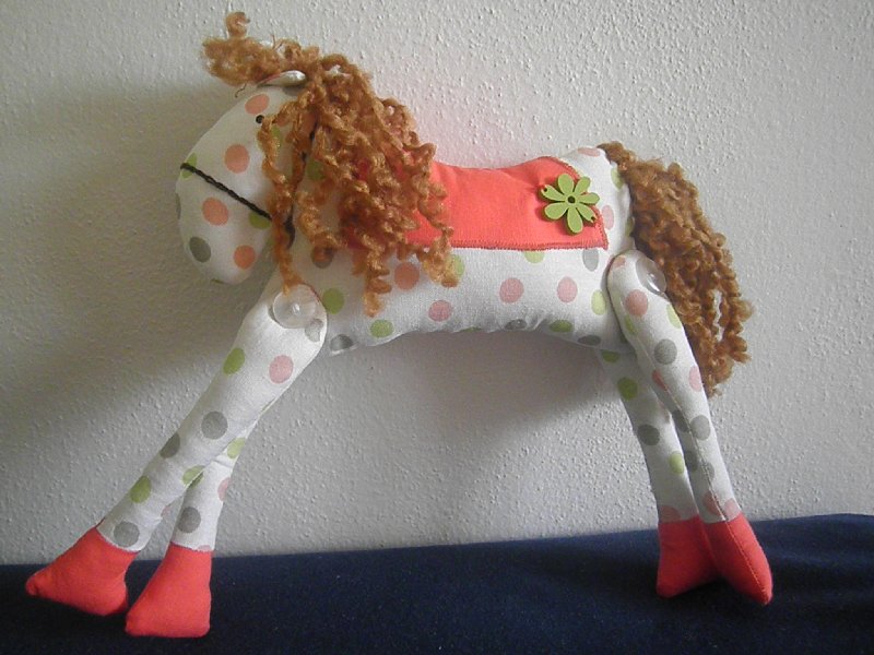 koník ušitý podľa môjho návrhu nožičky sa dajú hýbať má cca výško 15 cm