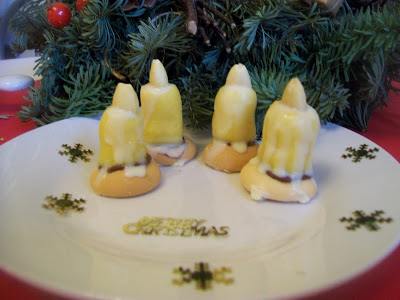 Golden Almond Marcipan. Usulala som valceky, prilepila nutelou detsku piskotu. Vrch som poliala bielou rozpustenou cokoladou, zapichla mandlu bez supky a mila drobna vianocna cukrovinka bola na svete
