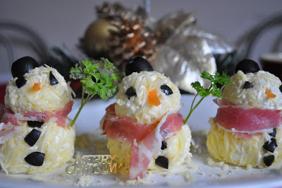 soft cheese cream ( mozno nahradit pomazankovym maslom alebo napr. syrom Bambino a pod.u mna 400 g) 2 struciky cesnaku tvrdy syr na struhanie ( u mna chedar asi 130g) zopar ciernych oliv bez kostok zeleny petrzlen ( na akoze metlu) tenke pasiky sunky na salik ( u mna kusky Pancetty) Mnozstvo ingrediencii si upravte podla potreby, uviedla som iba orientacne mnozstva)