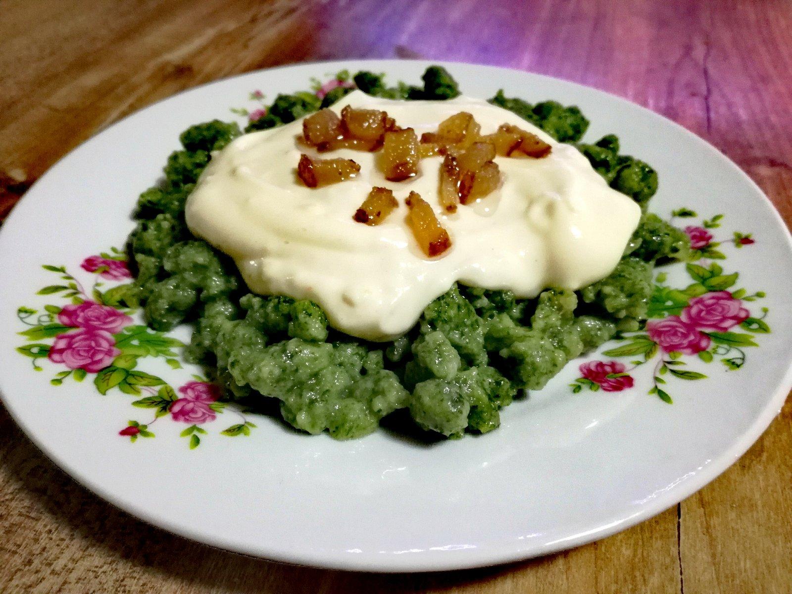 @dubka29 su to spenatove halusky so syrovou omáčkou a slaninkou.....recept mam zo školskej jedálne,pomery podla mna,ale chutili fantasticky.....cesto:na oleji opražíme nadrobno nakrájanu cibuľku,pridáme špenátovy pretlak mrazeny (vodu som po odmrazeni odliala),podusime,pridame sol a pretlaceny cesnak,necháme vychladnúť...tuto zmes pridame k zmesi hrubej muky,vody a 1 vajíčka,ktoré sme si predtym vymiesali na redsie cesto...a ďalej varíme ako halušky....omáčka:urobíme si besamel-na oleji opražíme hladkú múku,pridáme šľahačku 33% a mlieko,premiešame,a potom pridáme makky syr,pomaly varíme,kým sa syr neroztopi,nakoniec dochutime pretlacenym cesnakom a vegetou(ja som si omacku nakoniec do hladka zmixovala)....halušky po vybrati z vody polejeme troskou oleja a zmiesame(v recepte bolo pisane preplachnut vodou a omastit,ja som nepreplachovala,len precedila a omastila)nech sa na seba nelepia a podavame so syrovou omáčkou a môžeme dať aj slaninku