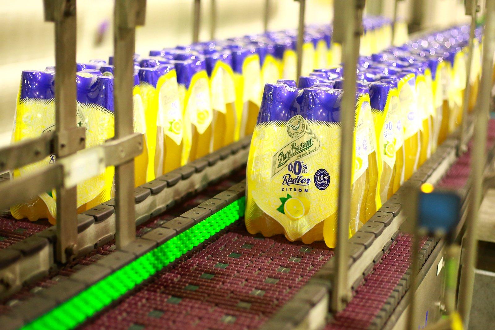 Fľašky putujú do útrob výrobnej haly, kde sa ďalej balia na palety. Palety pokračujú do expedičného skladu. Odtiaľ sa rozvážajú na pulty obchodov po celom Slovensku.