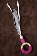 Drevený krúžok a korálky sú z prírodného nelakovaného a nemoreného dreva. Drevené guličky sú obháčkované 100% bavlnou.