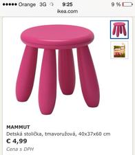 Predám novú detskú stoličku Mamut, ružovej alebo bielej farby za 4 eurá (jedna stolička). Odber je možný priamo v Trnave, alebo poštou (+poštovné).Kontaktujte ma prosím na tel.č. 0918 913 619 alebo do súkromnej správy na Modrom Koníkovi.