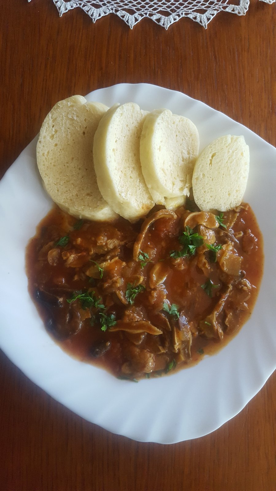 Dobrú chuť😁 dnes hubový perkelt a domáca knedľa👍