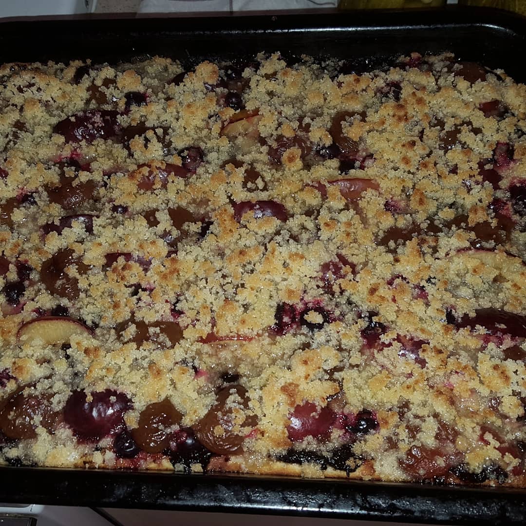 Hrnčekový s posýpkou +slivkový lekvár a slivky😋
