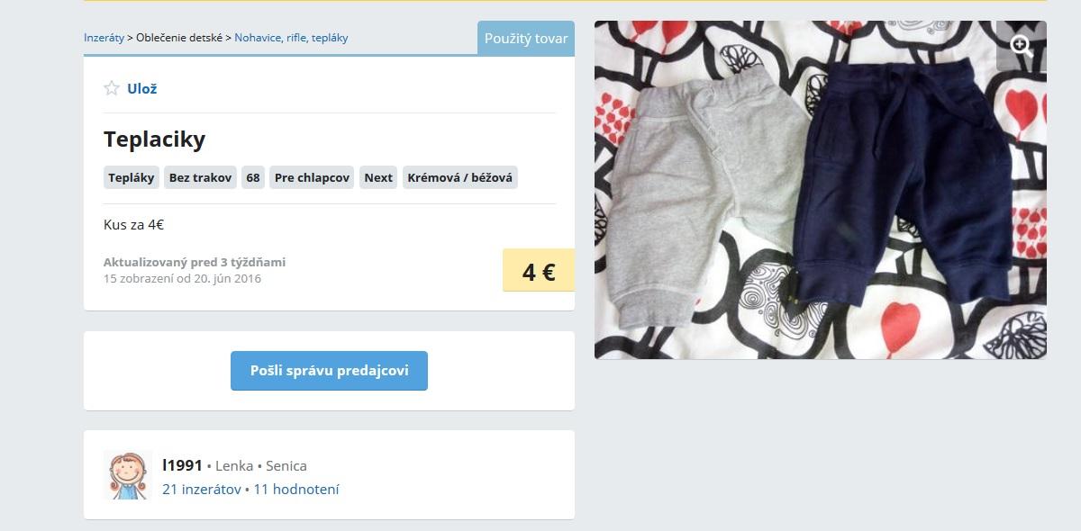 @micak mne stopli inzerat na teplaciky znacky next vsetko vyplnene ako nalo byt ale az po vyse pol roku 🙂 a stale bol aktualizovany.... ale pokrutila som len hlavou a zasmiala sa,tu sa mazu inzeraty asi podla sympatii 🙂 a nenapisali mi preco mi ho vymazali,len ze ,,nezodpovedal,, a pritom ako co nezodpovedalo neviem kedze vyse pol roka zodpovedal 🙂