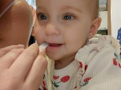 Baška má už 3 zúbky a zakaždým s mrnkaním... skúsili sme jednoducho Camiliu a zázrak. Zaberá
