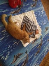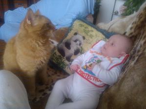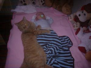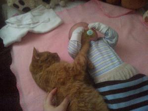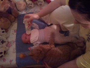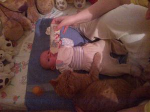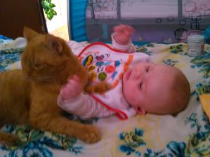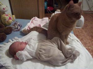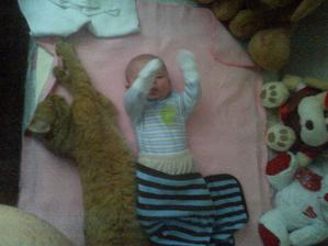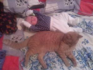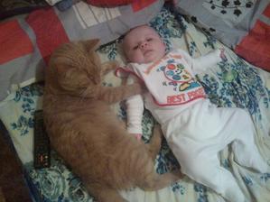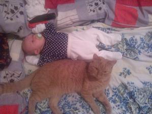 Ak niekto odcudzuje spojitosť mačka a dieťa tak sa veľmi mýli.Pokiaľ je o zvieratko postarane tak nič nehrozí, prave naopak neviem si našho Kika vynachváliť. Je užasne ako dokaže reagovať na Timejku, a ked ju dokonca nepocujem ze som v inej izbe a ona sa zacne mrvit, Kiko mi pride dať najavo ze mam ist do izby k Timejke pretoze sa zobudila. Okrem baby monitora mam aj štvronohého strážcu