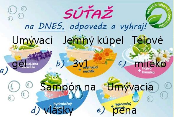 A-umyvaci gel s levandulou B-jemny kupel 3 v1 C-bupi telove mlieko D-bupi mydlo E-umyvacia pena - este sme nic z toho neskusali, ale radi by sme 🙂