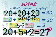 Veľmi pekne ďakujeme za všetky vaše odpovede! Dnes sa vás zapojilo viac ako 200 a všetky ste odpovedali správne 🙂. Tešíme sa opäť na zajtrajšiu súťaž. Dnes vyhráva správna odpoveď " 20+5+2 sa rovna 27 preto lebo kazde mydlo ma svoju hodnotu " od maminky s nickom: @monicqko