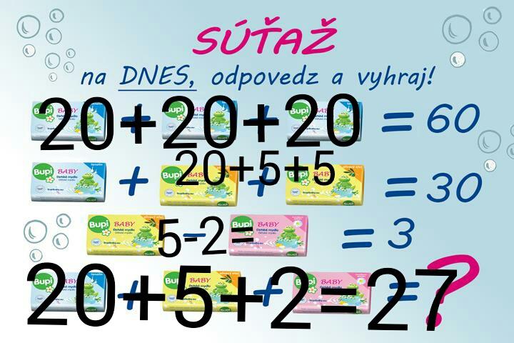 Veľmi pekne ďakujeme za všetky vaše odpovede! Dnes sa vás zapojilo viac ako 200 a všetky ste odpovedali správne 🙂. Tešíme sa opäť na zajtrajšiu súťaž. Dnes vyhráva správna odpoveď " 20+5+2 sa rovna 27 preto lebo kazde mydlo ma svoju hodnotu " od maminky s nickom: @monicqko
