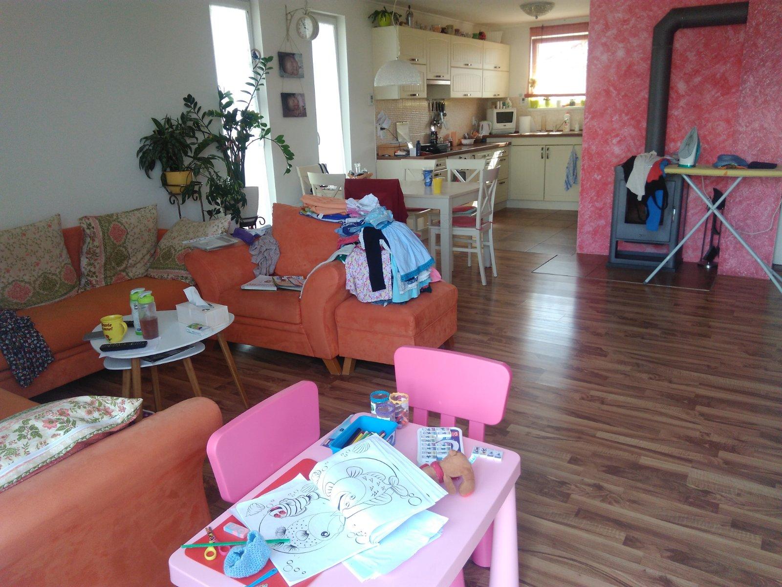 @mickazebra ja na tých fotkách nevidím nejaký neporiadok, proste sa tam žije,varí, perie, zehli, veci sa prekladajú a čo? Nevidím na zemi špinu, hnoj alebo kopu ospadkov. Toto nie je neporiadok, to je fungujúca domácnosť, kde sa žije.. Mať všetko tip top, nedajbože položiť šálku na stôl, lebo ostane fľak,nedajbože sadnúť na gauč, lebo bude pokrčeny vankúš?! Áno, tak to mali naše mamy.. Vždy upratané a samé zákazy. Stará škola.. Doma máme žiť, užívať si. Deti vyrastú a potom bude veľa času na upratovanie, ale teraz si užívajme tie ich pušinky, hry, hračky.... ❤️