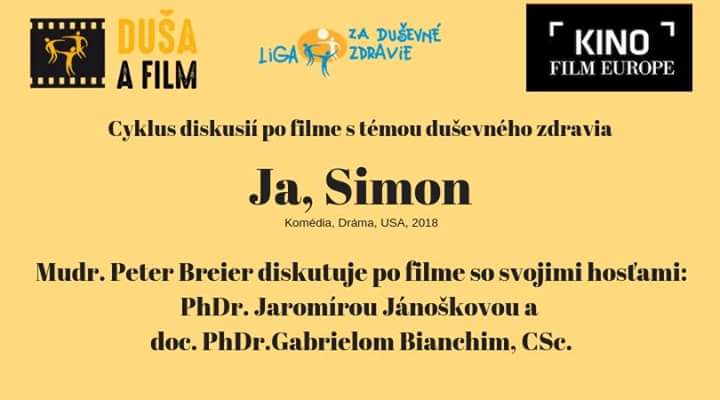 Prvý film sa bude premietať 8.októbra pri príležitosti Svetového dňa duševného zdravia, ktorým je 10. október. Jeho témou je v tomto roku Duševné zdravie detí a mládeže so zameraním na coming-out pri problémoch spojených so sexuálnou orientáciou. Premietať sa bude nový americký film Ja, Simon. Diskutovať budú PhDr. Jaromíra Jánošková a doc. PhDr.Gabriel Bianchi, CSc.