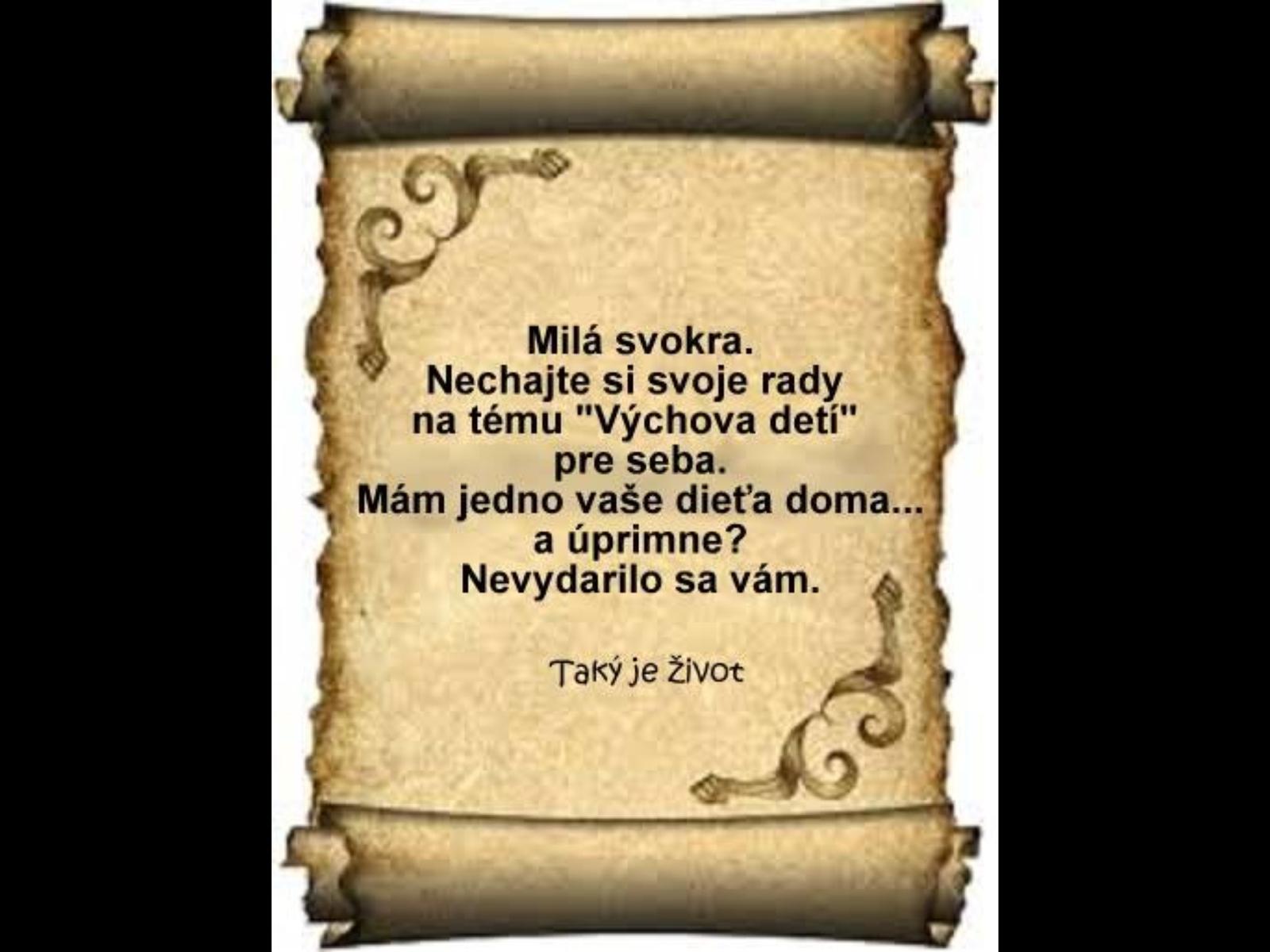 @anet25 ja dieťa nemam, ale včera som bola pri kamarátke a bola tam je svokra, tak som mala dosť, esteze moja býva 2500 km od nás 😀