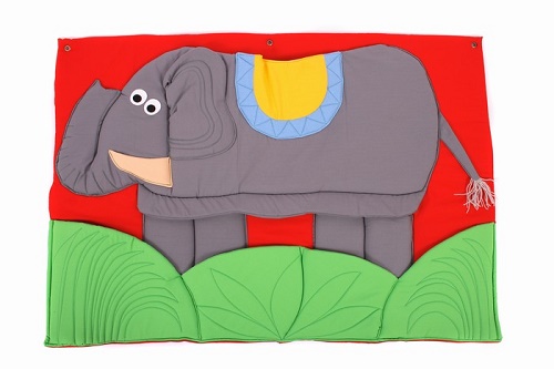 Vreckár s obrázkom slona s 13 vreckami, je vyrobený zo 100% bavlnenej látky. Možno prať pri teplote do 30 °C.