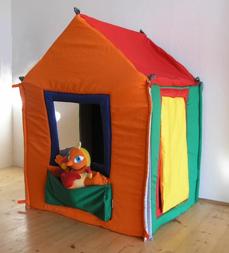 Domček – vreckár Domček je skladací. Keď sa deti prestanú s domčekom hrať, môžeme ho zložiť k stene, kde plní funkciu vreckárov a nezaberá tak miesto v detskej izbičke. Zároveň v zloženom stave pôsobí ako dekorácia a vreckár zároveň.