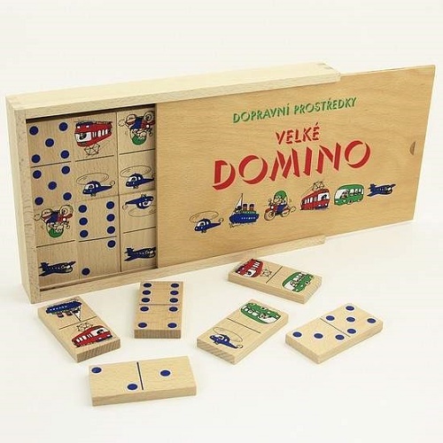Domino Dopravné prostriedky - obojstranné domino s obrázkami dopravných prostriedkov, vďaka nemu dieťa spoznáva bežné dopravné prostriedky. Rozmery: 280 x 170 x 36 mm