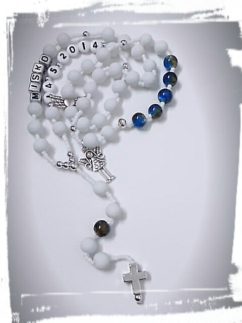 Ahoj. Mala by som zaujem o takýto biely ruženec ale s červenými alebo ruzovymi gumičkami bez anjelikov a bez toho srdca.Meno Rebeka,dátum 29.5.2016 a poprosim biele písmenká.dakujem