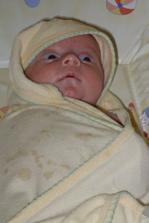 Bocian dorazil o viac ako mesiac skor (ukecal som ho, uz ma to tam nebavilo...) a tak som sa miesto 15.5. narodil 11.4. Mal som vsetko co som mal mat /2790g a 48cm pri porode/ a tak po ohriati sa par dni v inkubatore a zltacke sme prchali z porodnice s pripisanou vahou po 12-tich dnoch - uz sme tam nemohli dalej vydrzat! :o) Nastastie jedna zlata sestricka nam pomohla sa odtial dostat za co jej velmi pekne dakujeme! Dalsie fotky su v mojom druhom albume...