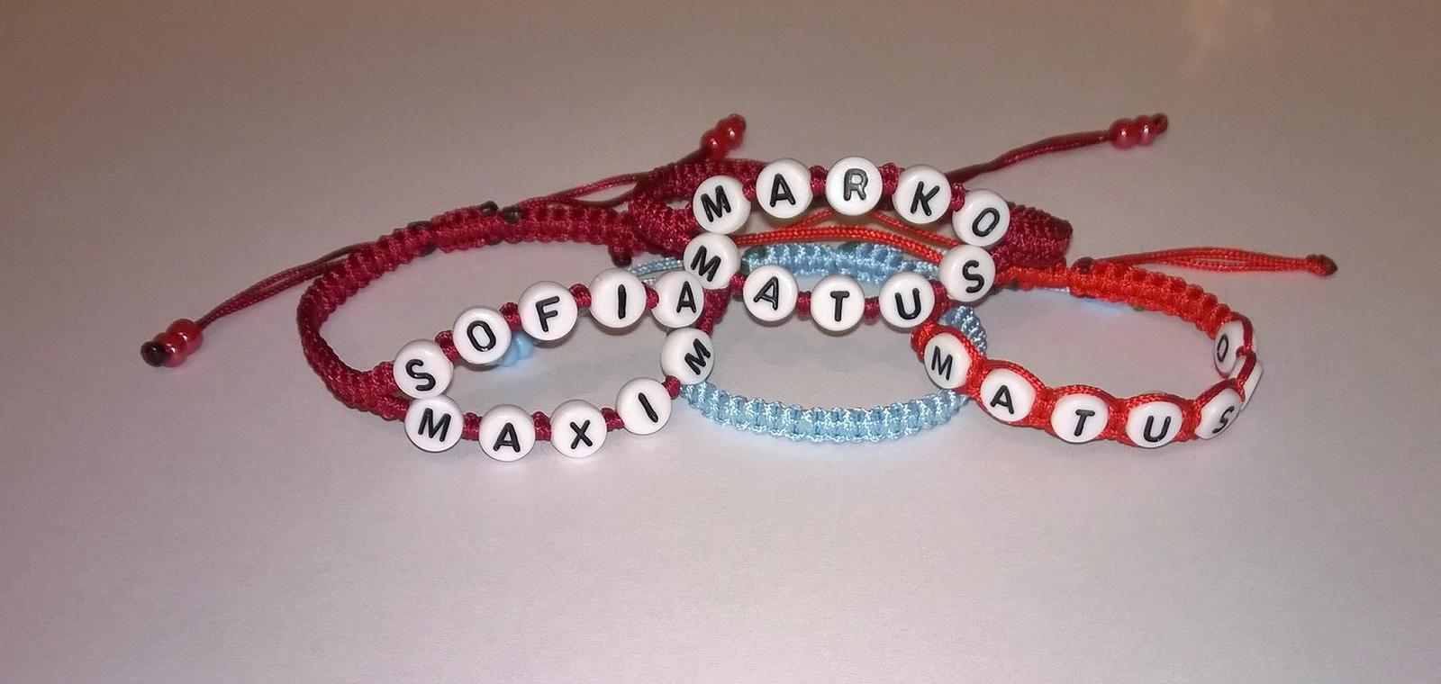 Náramok s dvomi menami - 3,50 €, náramok s menom - 2,50 €, jednofarebný náramok - 2 €