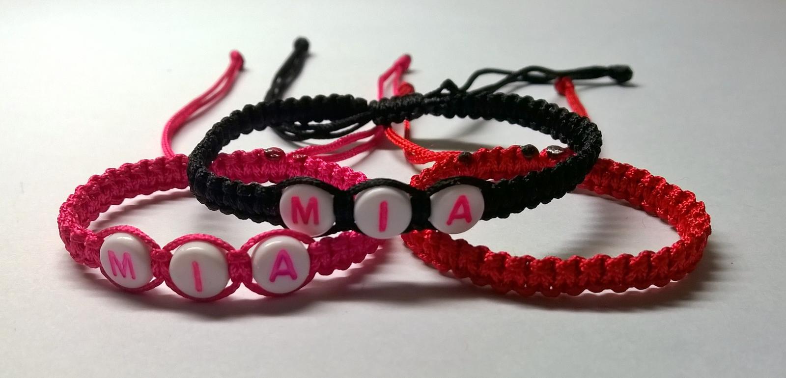 Jednofarebný náramok - 2 €, náramok s menom - 2,50 €