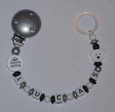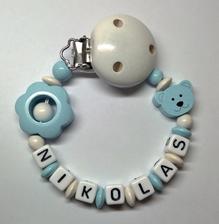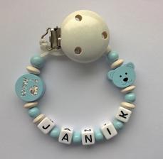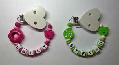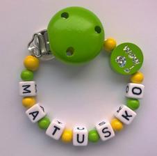 Všetky mnou používané komponenty na retiazočky neobsahujú škodlivé látky. Farby a laky sú stále, kov na klipe neobsahuje nikel. Retiazočky zhotovujem podľa platnej normy na výrobu retiazok na cumlíky, ktorá určuje maximálnu dĺžku retiazky, minimálny priemer použitej šnúrky a korálok.