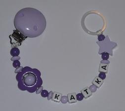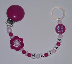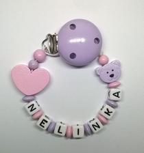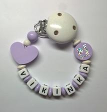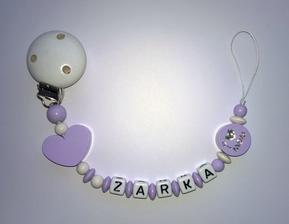 Poprosím aj retiazku na cumlíkom v tmavo ružovej a fialovej farbe s menom Timea