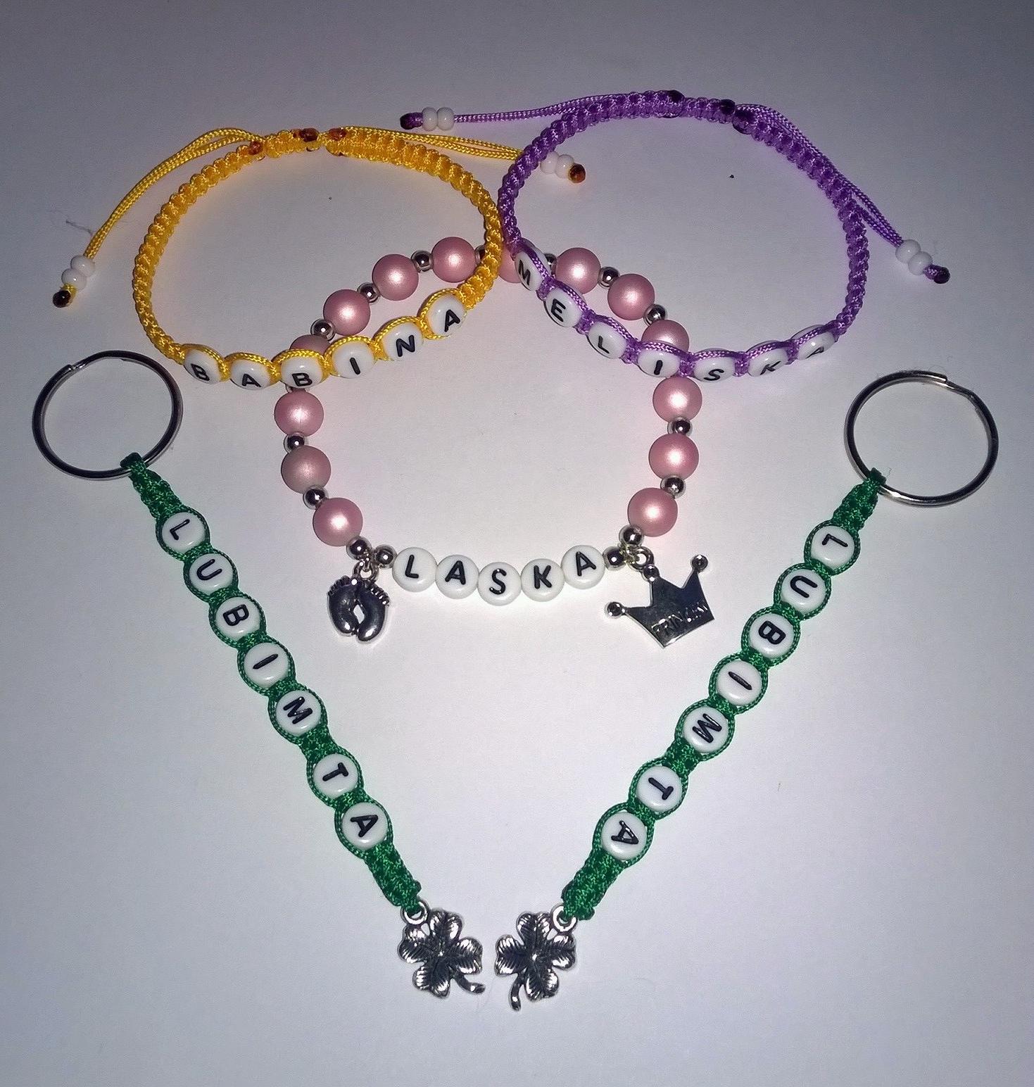 Kľúčenka - 2,50 €, korálkový naramok - 3 €, náramok s menom pletený - kus - 2,50 €