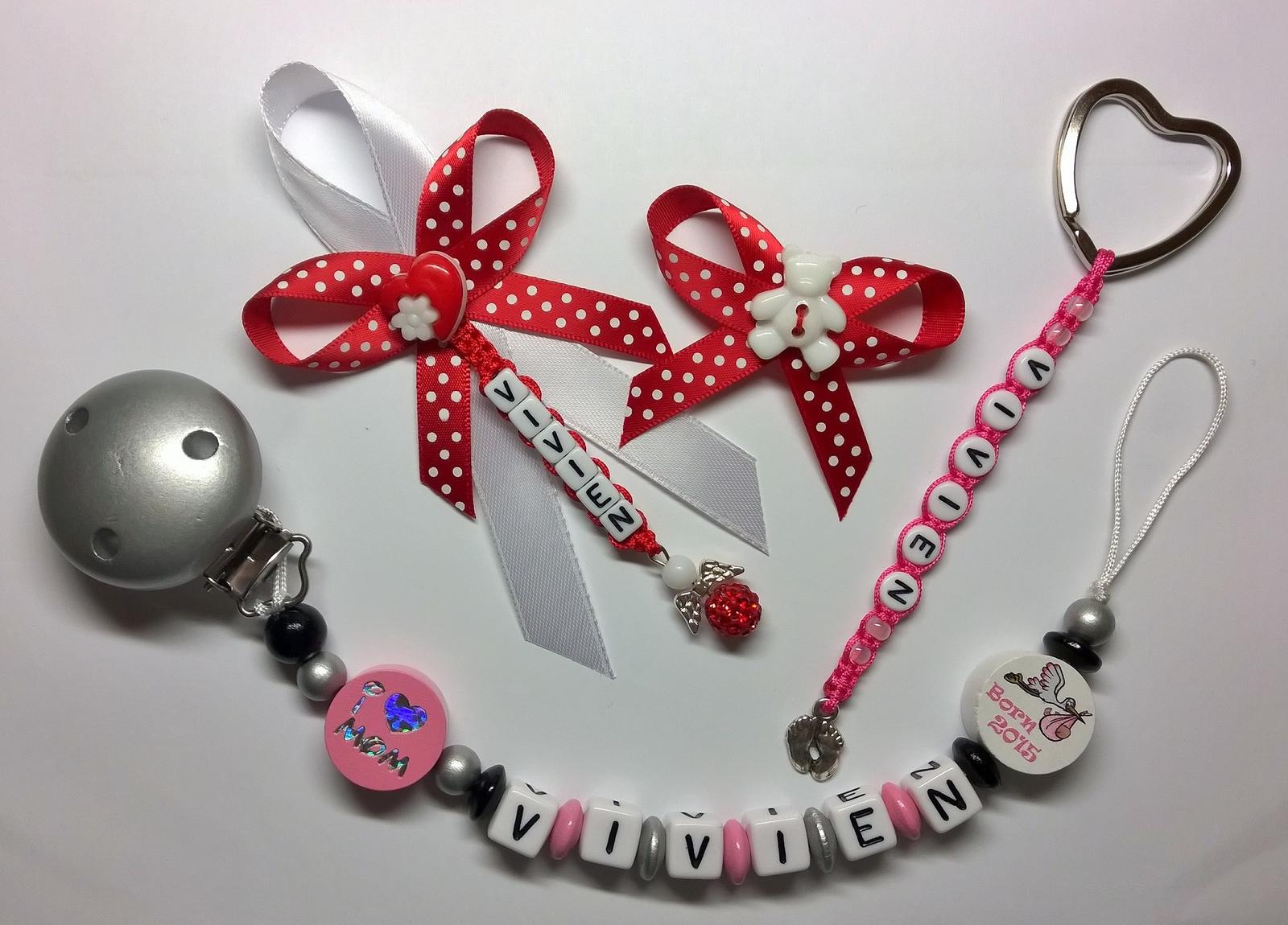 Jednoduchá mašlička - 1 €, kľúčenka, mašlička - 2,50 €, retiazka na cumlík - 7,50 €