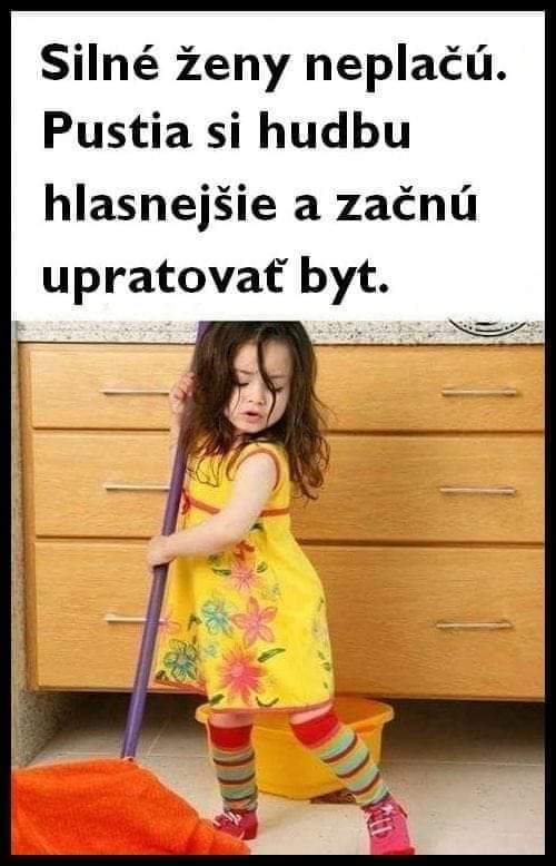 preboha nikdy 😅 to fakt budem radšej plakať ako upratovať v rámci terapie 😂na zlé chvíle mám víno a kamošky, nie metlu a handru 😝