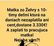 Tak co baby co hovorite na tych 333 co poctivy pracujuci clovek co maka aby prezil co matka na materskej nedostane?? Ale vieme komu idu a na kazde dieta☝️.. Tak ze ich maju nakotenych za vagon som max nasrata 😡a nehovorim kolko ludi prislo o pracu