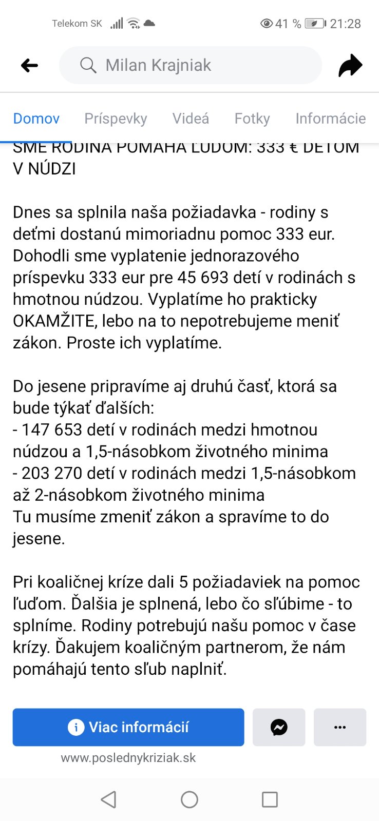 @marsmykkok ved presne.my s muzom pracujeme,ja len na polovicny,koli detom.bola som 3mes.na pandemickej ocr,lebo nam zavreli skolku,potom sme to latali kadejako s babkami a ohrozovali ich,ale inac by sme nepoplatili co mame.syn je 9tak museli sme mu kupit tlaciaren,kameru...prisli o uspory,ktore sme si vymakali tvrdou robotou.a ja ked vidim,ako sa nam hentaki zmrdi smeju do xichtu a peniaze prepiju atd..a nie ze dostanu deti,je mi zle.