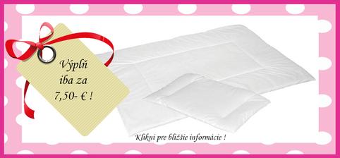Pri kúpe súprav obliečok do detskej postieľky si môžte priobjednať výplne do týchto súprav iba za 7,50- € namiesto 13,- € !