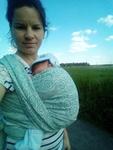 Tá plienka za hlavu sa už neodporúča, stačí poriadne pritiahnuť šatku a akú to máš prosím ťa šatku? Zdá sa mi už na ňu bábo ťažke, alebo to máš dajak divné podsadene