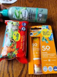 Kém má praktické kabelkové balenie. Využili sme ho aj teraz, keď bolo slniečko. Je super, že nie je príliš prevoňaný. Má ľahké nanášanie. Veľké plus je, že sa nanáša priamo a človek si zbytočne nezamaže ruky :-) A hlavne OF 50 je top pre malé deti.