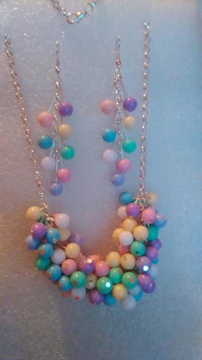 @viko hotový trojset: náhrdelník, náramok, náušnice z 20mm korálok s farebným odleskom... 🙂