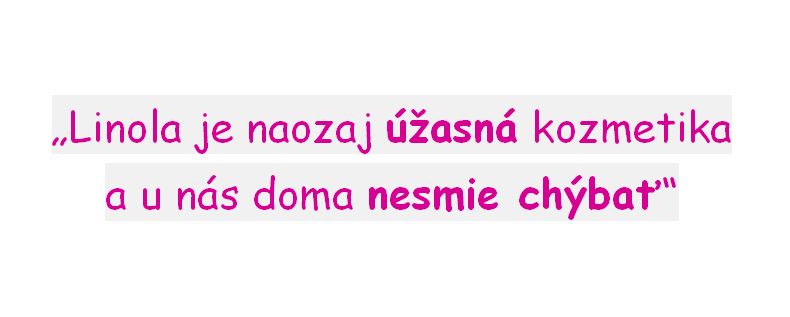 Dnešná #linola skúsenosť bude trošku dlhšia, ale určite stojí za prečítanie, ďakujem @ninakolarova: "#moja_linola Ahojte 🙂 , chcela by som sa podeliť o moju skúsenosť s linolou, prvý krát sa u nás doma Linola objavila, keď si moja mama popálila nohu, natierala si to už od začiatku Linolou a krásne sa jej to za pár dní zahojilo 🙂 . Potom ni detská dr. povedala, že malá má suchú pokožku, že ju treba viac natierať, tak som stavila na Linolu a pri najbližšej prehliadke, chválila, že má pokožku krásnu, hydratovanú, tak som si povedala, že skúsim Linolu aj na svoj "problém" od tehotenstva sa mi tvorilo strašne veľa mazu/tuku/ alebo ako to mám nazvať na hlave medzi korienkami vlasov a bolo to dosť nepríjemné, keď som si ráno umyla hlavu a večer som ju mala mastnú a keď som si prehrabla vlasy, ostávalo mi za nechtami biele, no proste hnus. Kúpila som si teda Linola šampón a začala som si vlasy umýať len ním a čuduj sa svete, problém zmizol už po týždni 🙂 ... Takže vám chcem povedať, že Linola je naozaj úžasná kozmetika a u nás doma už nesmie chýbať!!! ĎAKUJEM za Linolu 🙂"