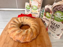 Najlepšiu skúsenosť som mala pri pridaní do bábovky spolu s DM bio hrozienkami a DM kakao nibs do dvojfarebnej zložky bábovky.
