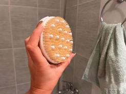 Táto kefa je topka. Má príjemnú kombináciu masážnych výstupkov a štetín. Príjemne masíruje a zároveň čistí pokožku tela. Vhodná na kúpeľ, či v kombinácii s peelingom.