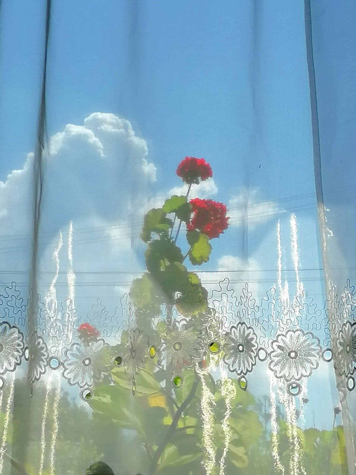 Dnes, dopoludnia, keď synček zaspal som sa zadívala na babkyn muškát v obloku za záclonou.. Krásna spomienka na niekoho, kto tu už nie je a občas veľmi chýba.. ❤️