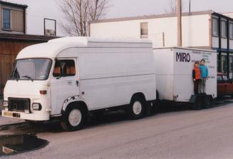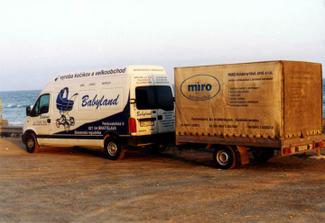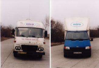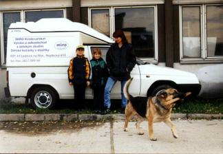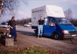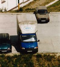 Ťažké, ale nadšené začiatky s osobným autom a malým prívesom. Potom prvé nákladné auto - AVIA Furgon, ( a dlhé čakacie lehoty na hraniciach, hmm, takých 24 hodín v 20 stupňovom mraze ☹ , druhá Avia - skriňová - s manželskou postelou 🙂, plachtový Ford ( krásne spomienky ), prvý Renault Master - najazdil cca 400.000 km, Renault Mascott - 6,5 tonové autíčko priamo z výstavy - autosalón v Nitre. V tej spacej nadstavbe, kumbáliku nad kabínou bolo útulno aj v zime.Najazdilo u nás vyše 600.000 km. Potom druhý Renault Master a konečne najnovší prírastok Fiat Ducato. A aby som nezabudol, malý pickap v českej pobočke. Po rozdelení republík naši obchodní partneri z Čiech boli zásobení odtiaľ.