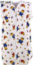 Spací vak - veľkosť 90. Vpredu zips, otvory pre obe ruky, materiál 100%-ná bavlna s nealergickou 100% PES-výplňou.