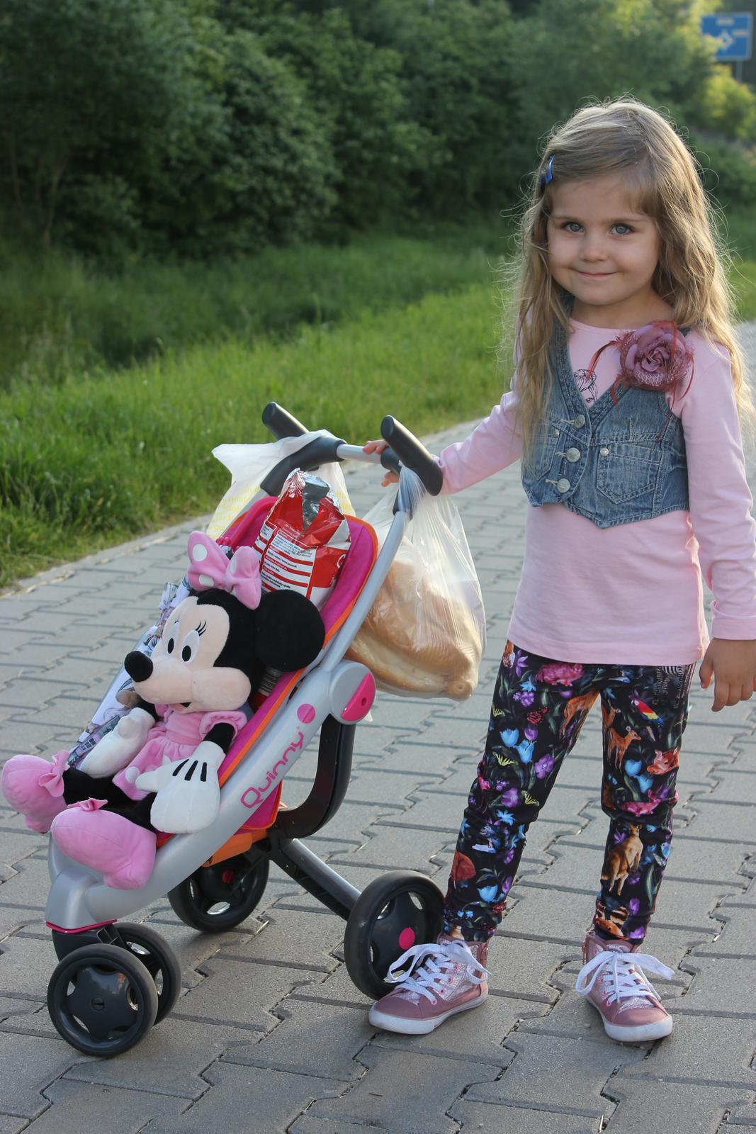 Jeeej aj my tak chodime..mame taky isty kocik ale babiku v nom nevozime....len Minnie