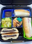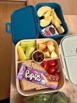 Desiata mojej 6ročnej prváčky ( 126cm/24kg). Oba boxy sú jej. V škole je od 7:00 do 15:00. Doma ráno vypije hrnček granka a zje niečo malé. Na obed zje všetko, niekedy aj na dupľu ide. Tyčinku tam má navyše, berie si ju so sebou lebo majú teraz korčuliarsky výcvik, tak tú zje tam. Pod uhorkami má ešte mrkvu. Zje všetko. Príde domov a je hladná…