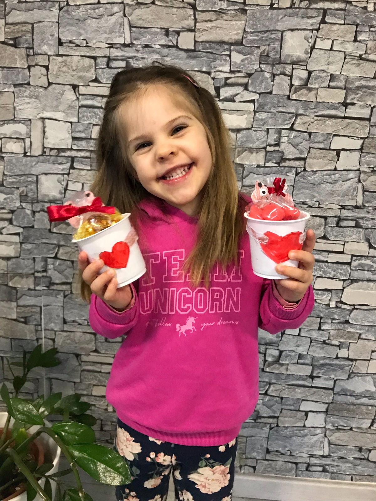 Včera sme tvorili a deti si odhlasovali, že by macík mal mať jahodové cukríky. Ja som druhému kelímok od Lipánka naplnila zas karamelovými. Teraz nám krásne zdobia stôl, len tie jahodové cukríky nebezpečne rýchlo ubúdajú 🙂 Čím to asi bude? 😀