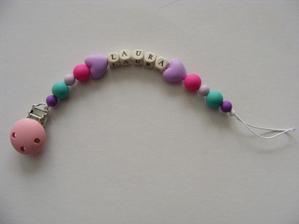 Retiazka je z drevenych koralikov a s bezpecnostnym klipom