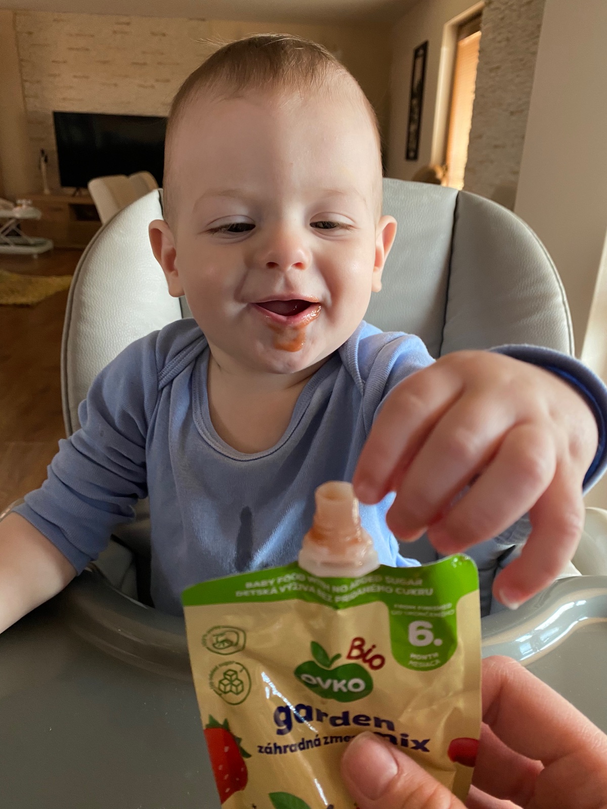 Pri ochutnávaní Bio výživiek som zostala v nemom úžase s toho , ako malému chutili . Mali sme možnosť ochutnať s viacerých prichutí , no a na počudovanie všetky chutili (dôkazom o tom , že chutilo , môžte vidieť na fotkách 😃)