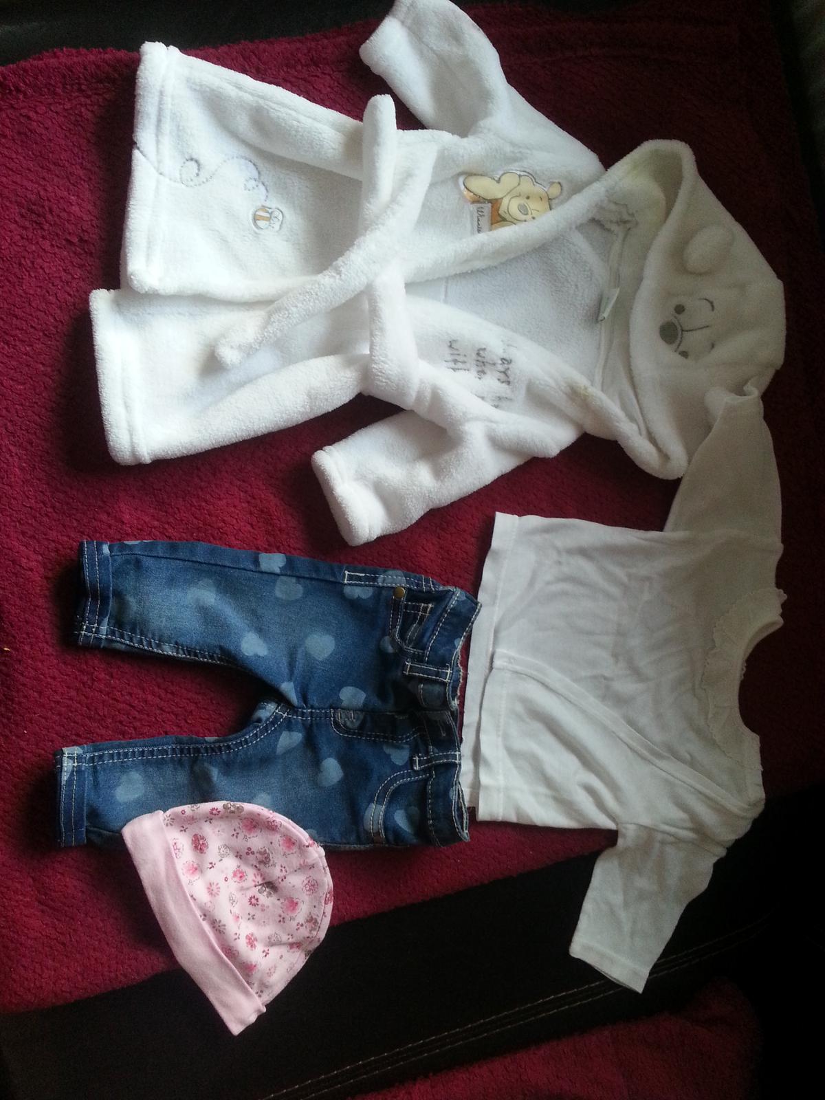 Úplne nová ciapocka rifle zupan pouzivany kosielka nova všetko spolu 10 eu !!! Velkost -0-2-3 mesiacov