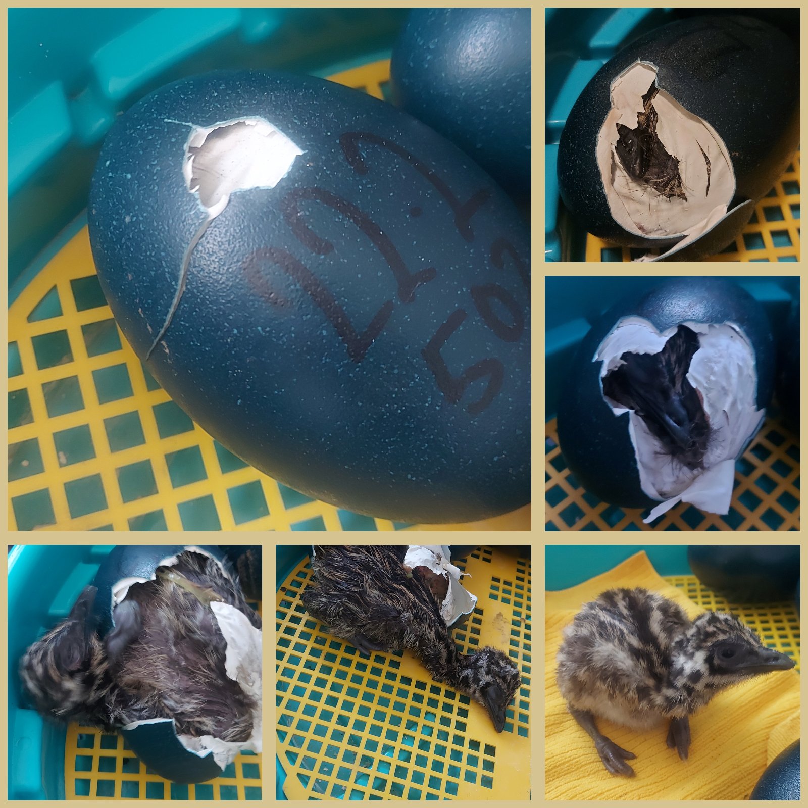 Moje prvé emu mláďa. 47dní neustáleho sledovania teploty a vlhkosti,otáčania vajec a potom 24 hodinova asistencia pri liahnutí. Úspesnost liahnutia emu vajec je nízka,preto som vďačná aj za tento jeden malý zázrak. Vyliahlo sa dnes o 8smej ráno. Zatiaľ živé,aktívne. Držte mu palce.Máme pred sebou kritické dva dni